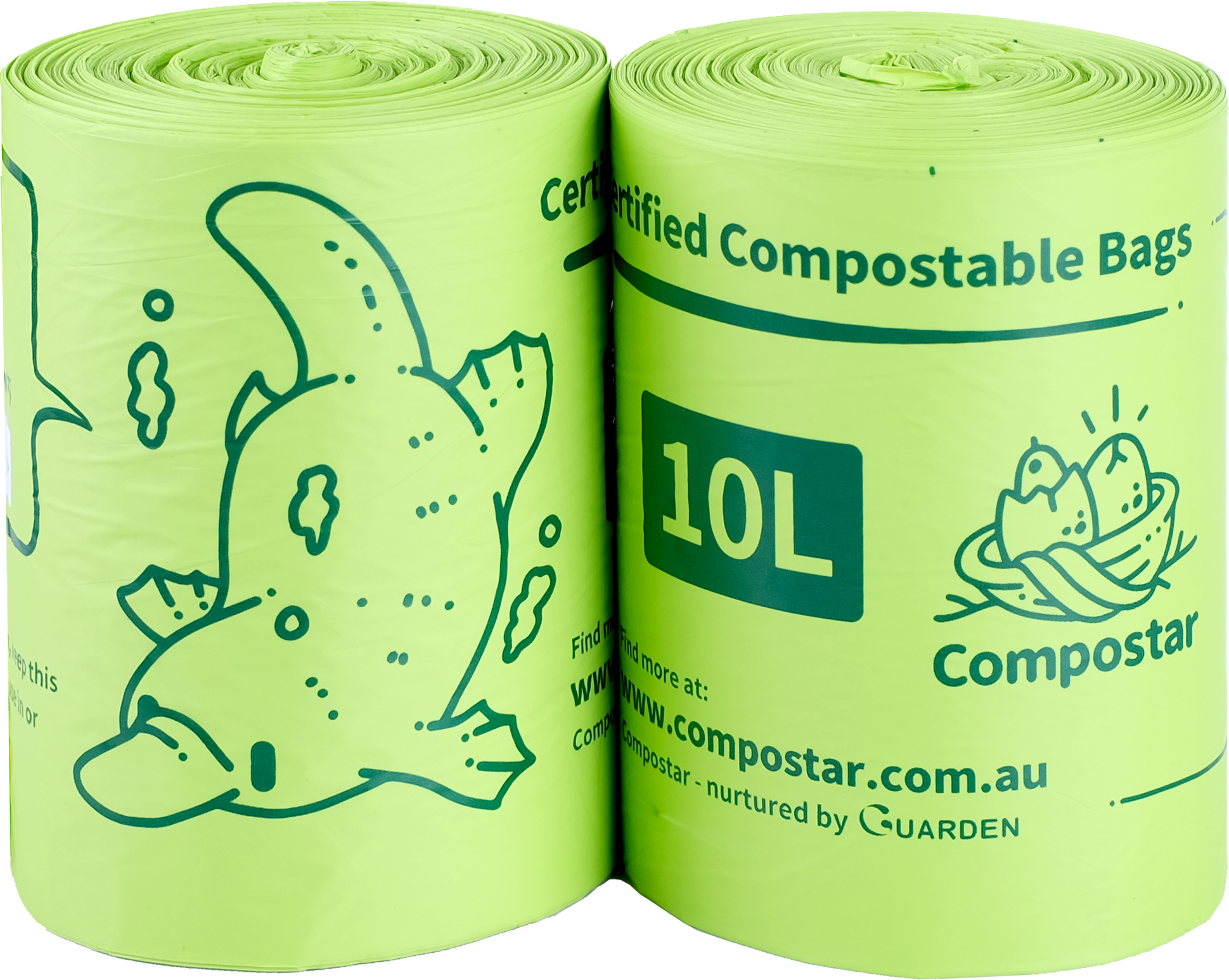 Our 10L compostable liners are designed for medium kitchen caddies, holding more daily organics without mess. Made from plant-based materials and certified AS 4736 (Commercial Compostable), they safely break down in council green bin systems. Durable and leak-resistant, they make kitchen clean-ups easier while keeping your home eco-friendly.