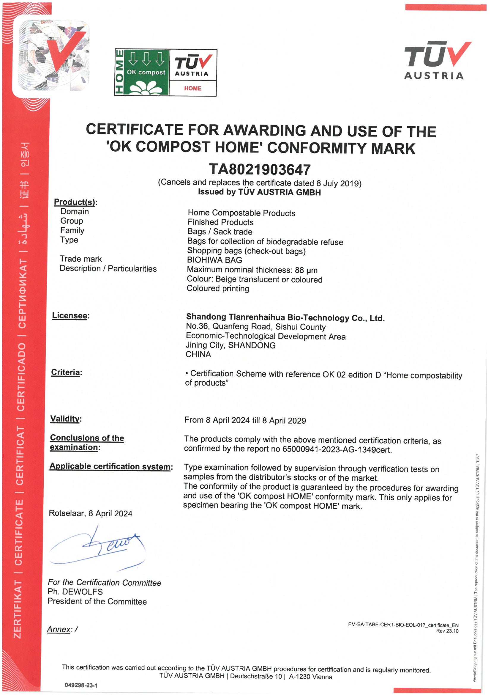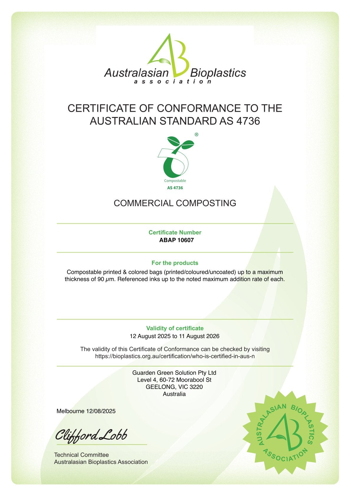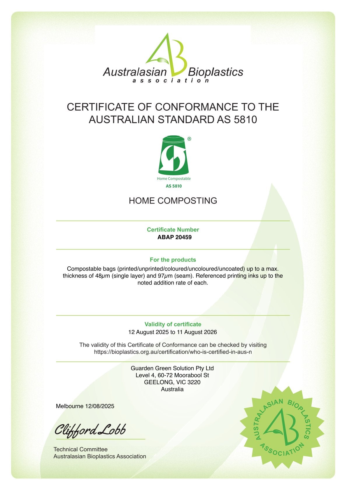 All Guarden compostable bags are tested and certified: